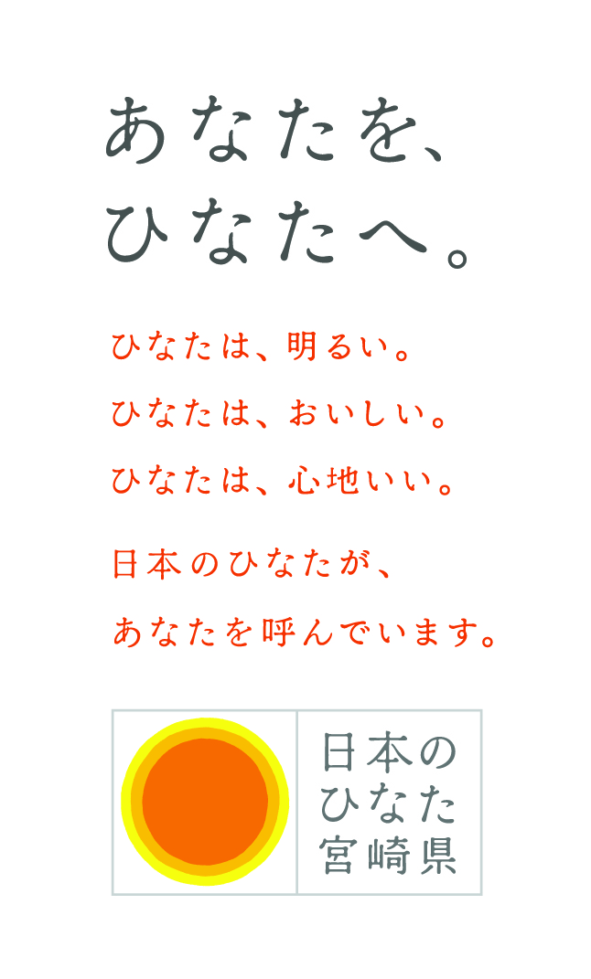 「ひろがる、ひなたのチカラ」を象徴する日本のひなた宮崎県のロゴ・デザイン。